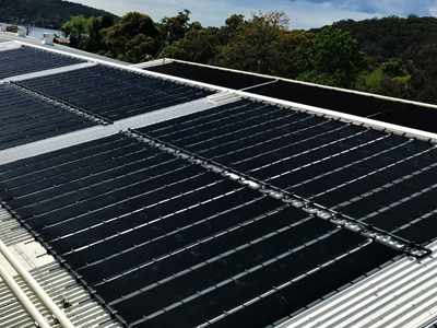 Most large commercial centres will require a back-up heater for the solar system to ensure year round consistent temperatures.